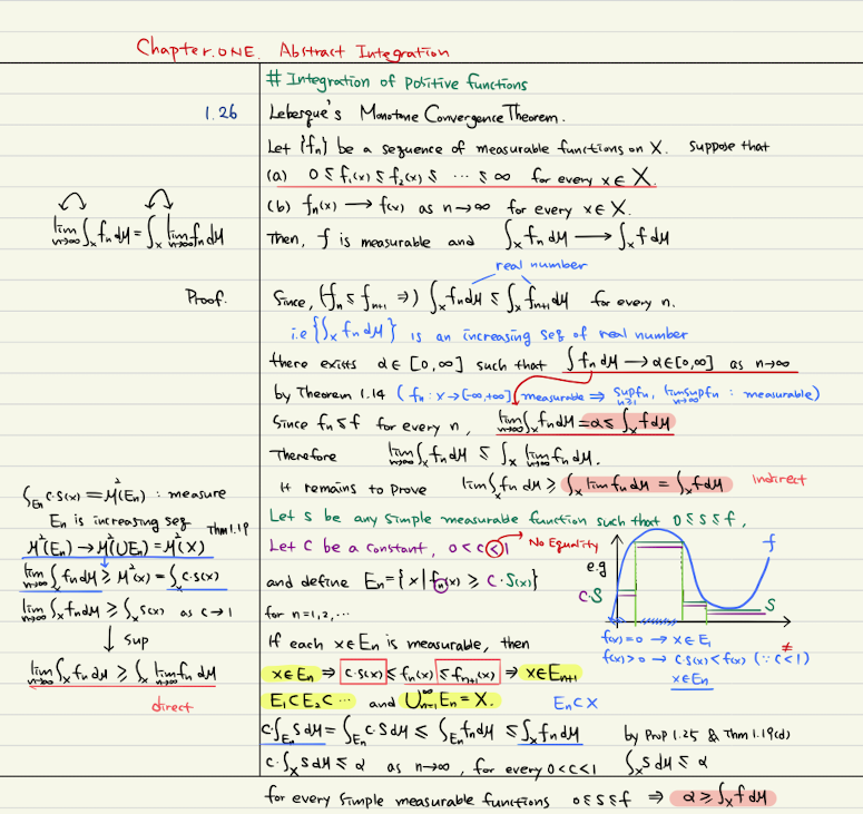 ch1. Abstract Integration | 1.26 Lebesque's Monotone Convergence Theorem | Real & Complex Analysis