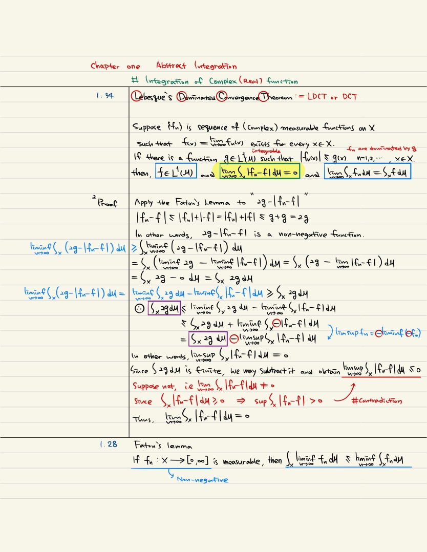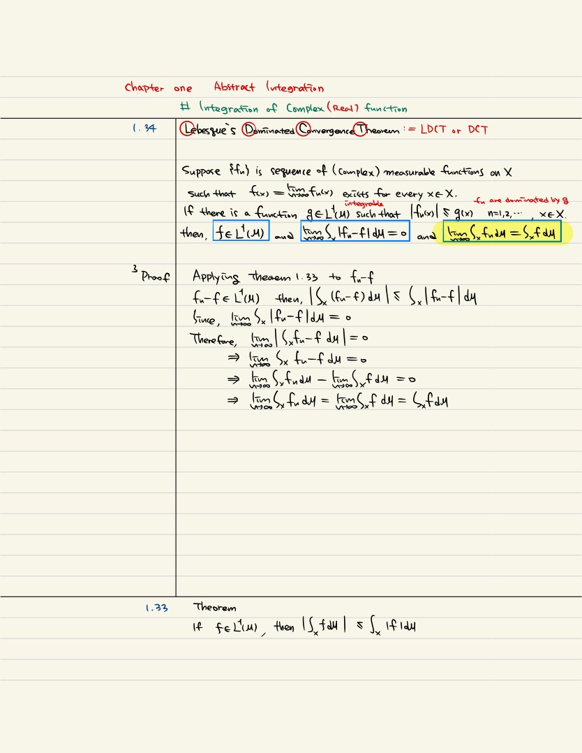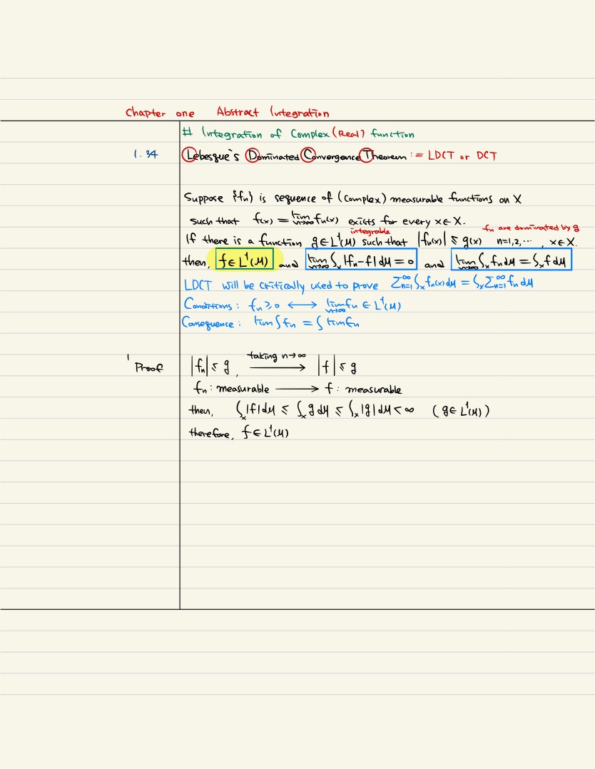 ch1. Abstract Integration | from 1.30 to 1.34 Lebesque's Dominated Convergence Theorem | Real & Complex Analysis