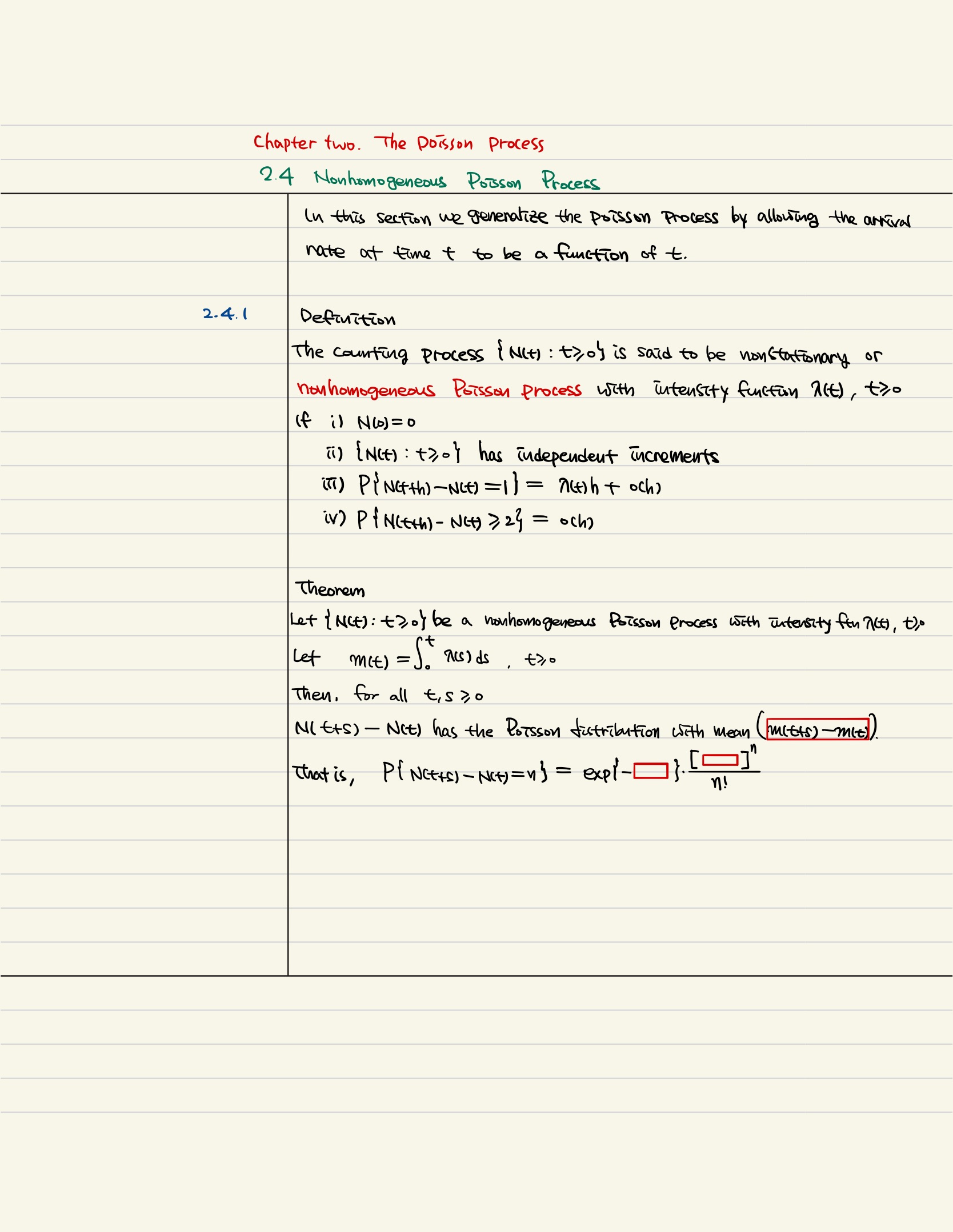 2.4 Nonhomogeneous Poisson Process | CH.2 The Poisson Process | Stochastic Process