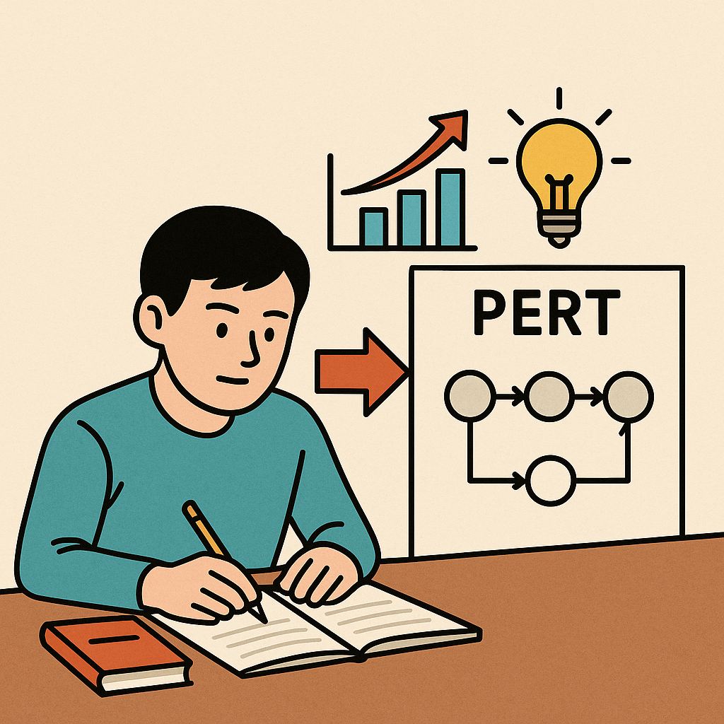 PERT는 원래 대규모 프로젝트 관리 기법이지만, 일상적인 학습이나 업무 계획에도 적용할 수 있습니다.