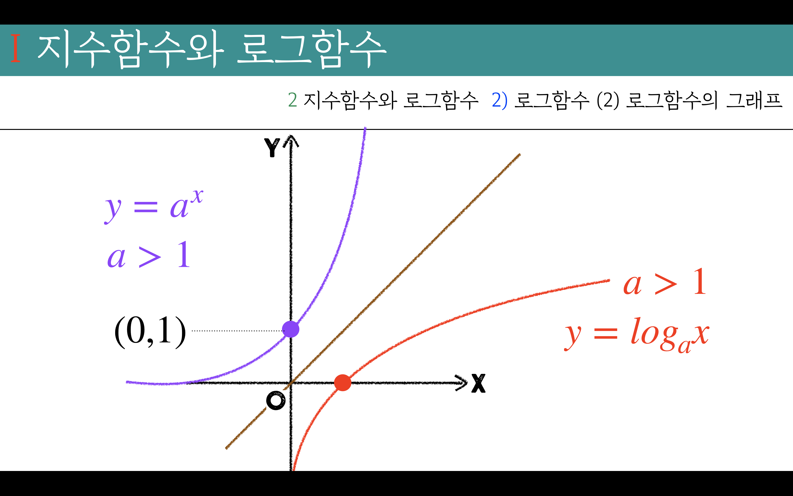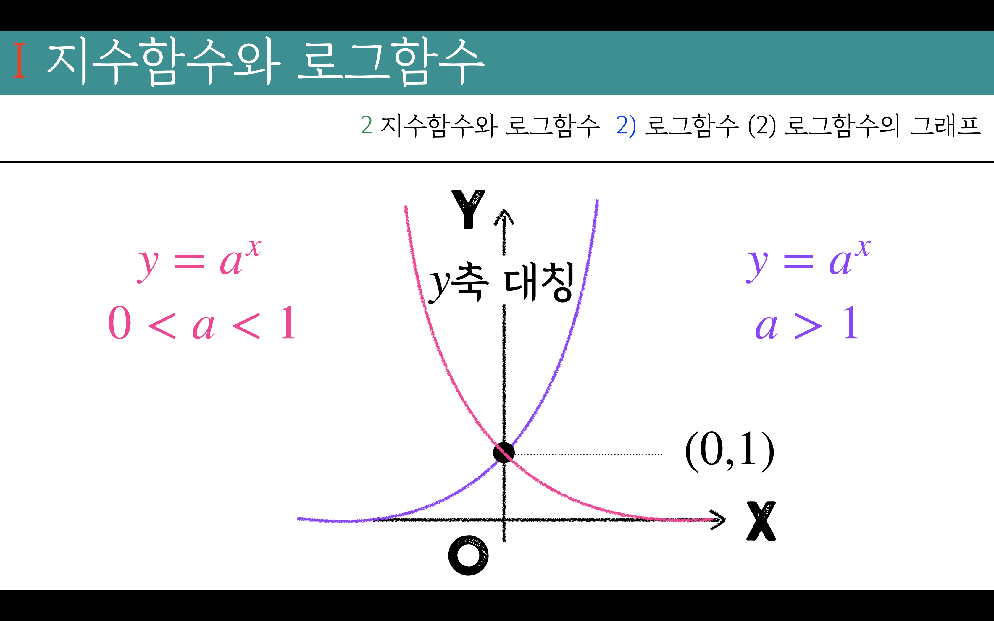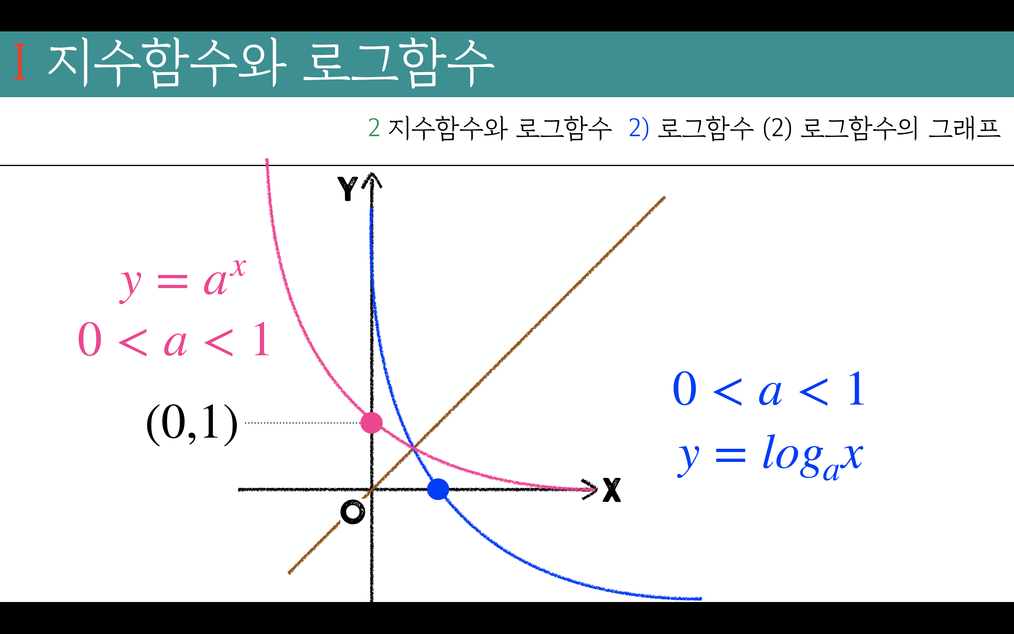밑0<a<1인 지수함수 y=x대칭