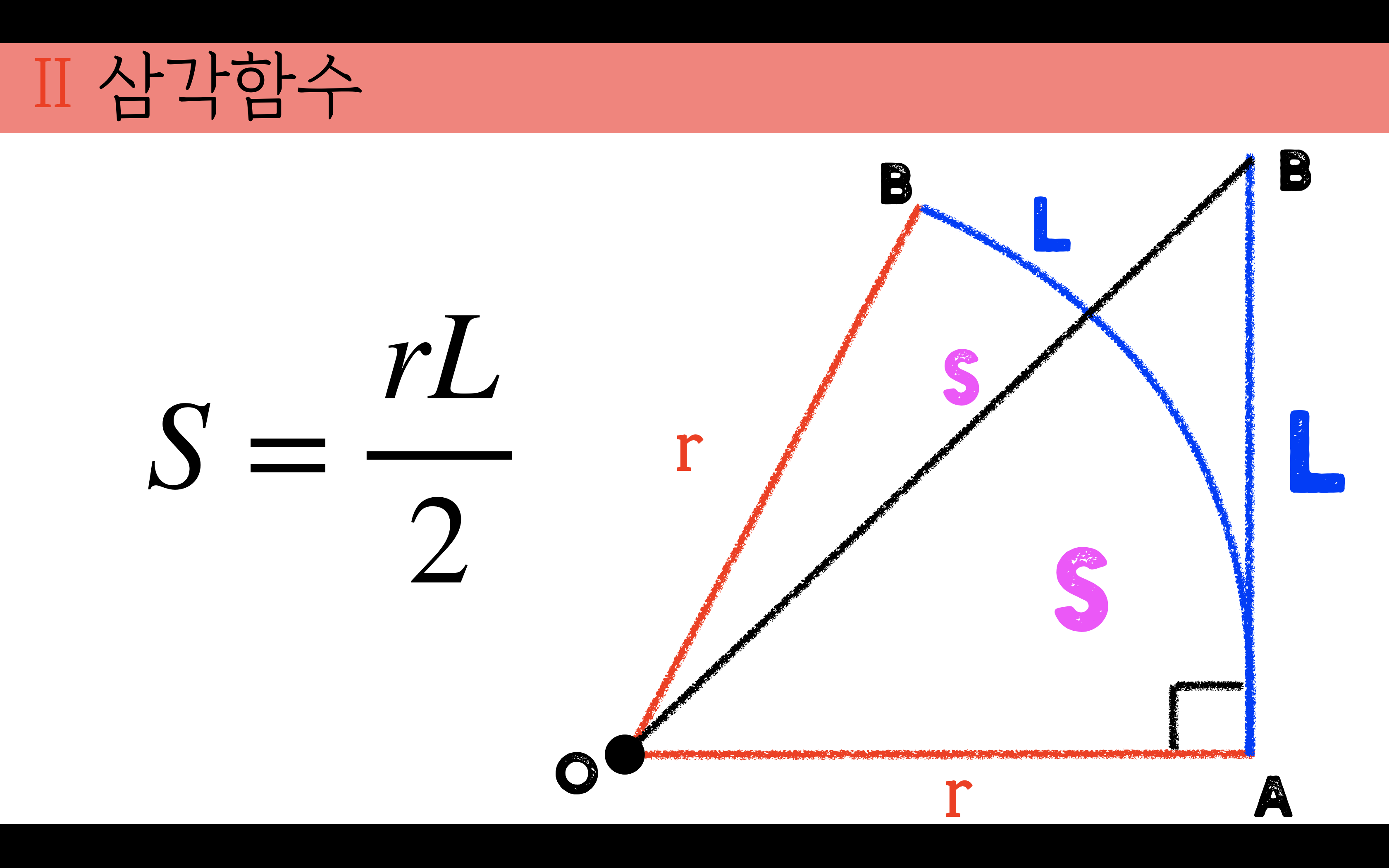 부채꼴의 넓이에서 호의 길이를 적용해보자.