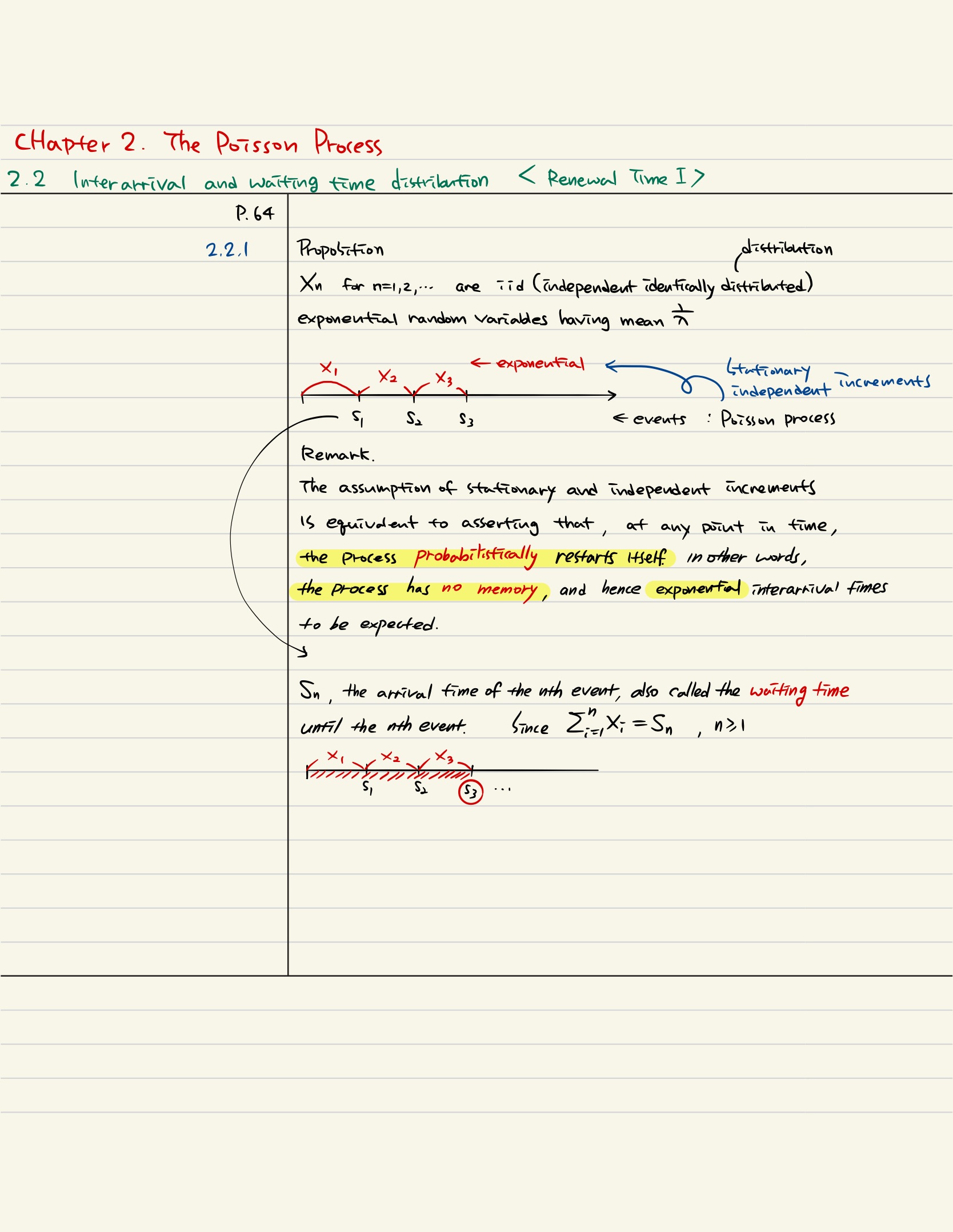 2.2 The interarrival and waiting time distribution | CH.2 The Poisson Process | Stochastic Process